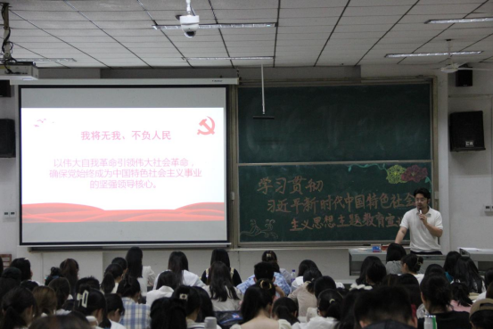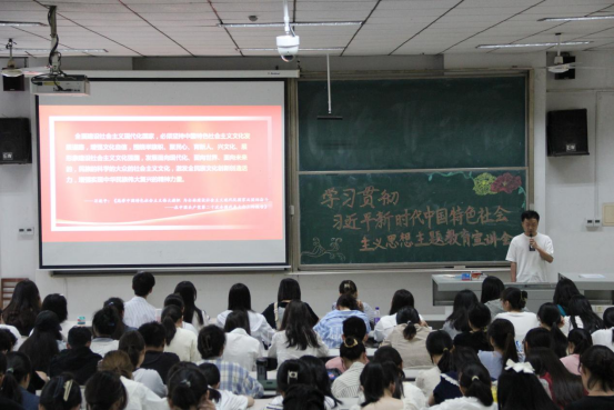 于综合楼101教室召开“学习贯彻习近平新时代中国特色社会主义思想学生宣讲团”宣讲活动,宣讲团成员边爽、唐金武、田昭霖为同学们开展宣讲。活动由外国语学院团委副书记张晓主持,51动漫
