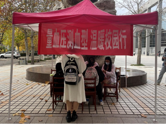 “量血压测血型,温暖校园行”活动在大学生活动中心和西公寓西一宿舍楼顺利举办,广大师生积极参与了此次活动。