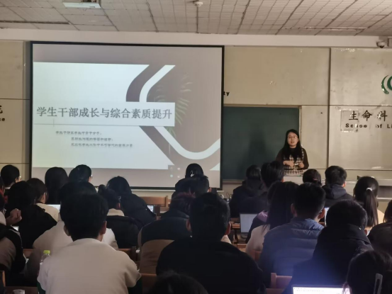 团委于生物楼232教室举办2022级学生干部培训活动,活动由团委书记刘文静主持。