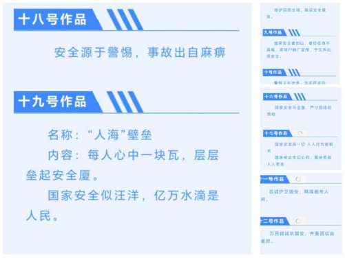 学生会相关负责部门共同商议策划方案,各部门间进行明确的分工,并由信息部下发活动通知,由媒体部进行学院内进行活动的推送与宣传,同时三个部门分赛道收集并汇总作品。同时各部门干事联系各班级负责人进行活动前期的宣传和准备工作。随后,活动通知下发,面向全体同学进行线上原创作品征集。本次比赛分为三个赛道,作品形式分别为公益视频、宣传海报和标语口号,各赛道设一二三等奖各一项,由评委进行打分并进行获奖名单公示。过程中同学们用心思考,积极创新,在兼顾传媒作品观赏性的同时合理扣紧国家安全宣传教育的主题,取得了良好效果。