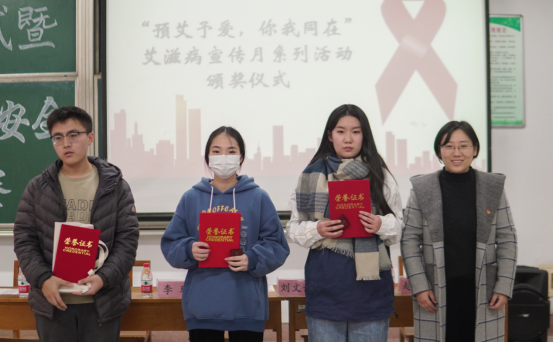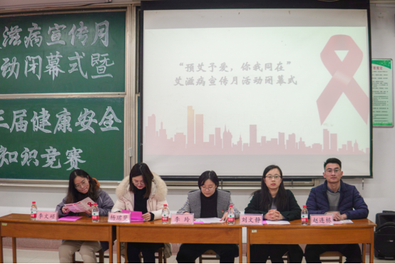 为了进一步普及艾滋病防治知识,增强大学生珍爱生命的意识,12月5日,“预艾予爱,你我同在”艾滋病宣传月活动闭幕式暨第三届健康安全知识竞赛在综合楼303教室顺利举行。参加本次活动的领导老师有校团委副书记李玲、院团委书记刘文静、学院辅导员赵连栋、杨珺斐、李文硕。