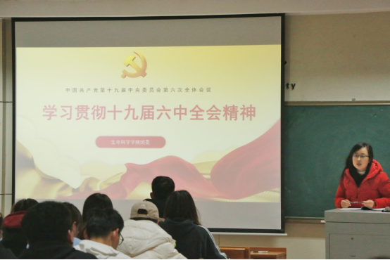 刘老师强调,全体团员要以《公报》《决议》《说明》为主要内容,结合习近平总书记系列重要讲话精神,充分发挥组织优势,掀起学习宣传热潮。全体团员要牢记共青团作为党的助手和后备军的职责使命,团结、引导广大青年凝聚在党的周围,自觉践行“请党放心、强国有我”的青春誓言。广大团干部要先学一步,学深一层,创新方式做好拓展宣传,让党的理论更好深入青年、引领青年。学院团委要紧密结合学校、学院青年工作实际,结合深化共青团改革、全面从严治团、庆祝建团100周年等工作主题,持续推进全会精神贯彻落实。