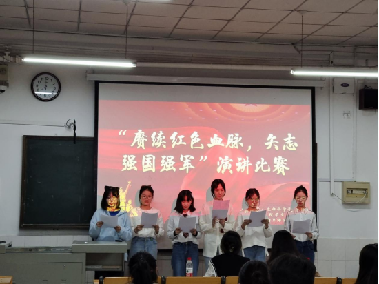 为深入推进我校国防教育向更深层次发展,激发同学们关心国防、热爱国防、建设国防、保卫国防的政治热情,10月9日,”赓续红色血脉,矢志强国强军”大学生主题演讲大赛初赛于生物楼317教室举行。本次活动面向2022级全体同学,学院团委副书记、学生会主席团主要成员担任比赛评委。
