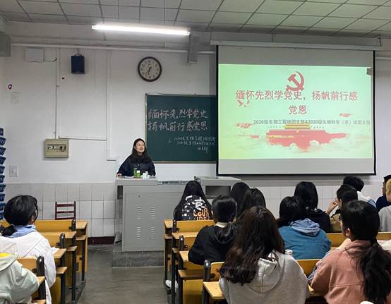 2020级生物科学班、生物工程班团支部于生物楼332教室共同举办了以“缅怀先烈学党史,扬帆前行感党恩”为主题的团日活动。2020级辅导员袁晓涵老师及团支部全体成员参加了本次活动。