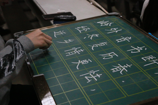 比赛伊始,王仁君院长阐明了本次活动的意义。随后主持人强调了比赛规则及注意事项,本次比赛由主办方提供纸张和黑板,选手根据编号入座并在十分钟内完成规定的书法作品。比赛时,每位参赛人员都全神贯注地挥洒书写之豪情。钢笔字铿锵有力,毛笔字行云流水,粉笔字刚劲潇洒。所有作品结构匀称、洒脱大气、遒劲刚毅。最后,由评委老师根据书写规范、间架结构、行笔运笔等标准进行现场打分,并进行点评交流。