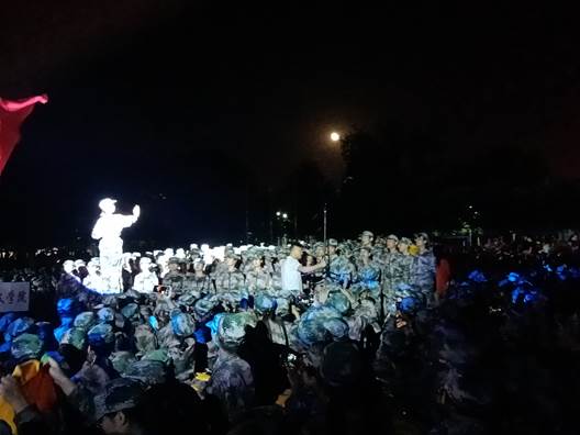 为了展示新生的青春风采,丰富学生军训生活,培养学生爱国主义精神,增强集体凝聚力。9月18日晚在学校南操场举行了军歌汇演活动,活动在掌声与喝彩声中来开帷幕,同学们都昂首挺胸做好了准备,51动漫
