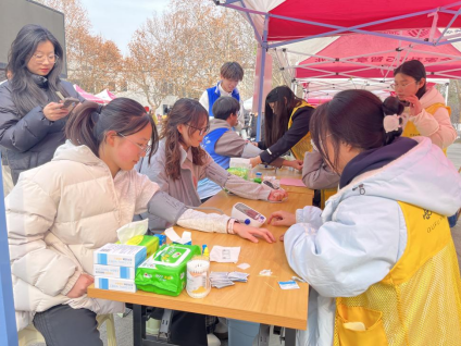 活动现场热闹有序,学院的志愿者们身着整齐服装,面带微笑,热情地引导师生参与。在量血压区域,志愿者们熟练地为师生绑上血压计,一边轻声安抚初次测量者的紧张情绪,一边仔细读取数值,并耐心讲解血压相关的健康知识,如合理饮食、适量运动对维持正常血压的重要性。在测血型区域,专业的检测流程有条不紊,志愿者们严谨操作,快速准确地检测出血型,还为师生们科普不同血型的特点以及在生活中的注意事项。