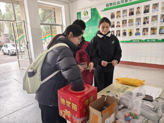 在活动正式开始前,办公室通过线上宣传招募了40位志愿者,并开展服务培训与岗位分工。活动期间,在学而餐厅、第三餐厅设置志愿服务点,身着统一服装的志愿者向践行“光盘行动”的师生发放独立包装湿巾、纸巾,倡导节约粮食理念;生物楼活动区同步开展知识问答互动,参与者正确回答3道及以上光盘行动相关问题即可获得学雷锋志愿活动奖品兑换卡,凭卡可至生物大厅参与抽奖。活动共计发放湿巾、纸巾及抽奖奖品150余份。