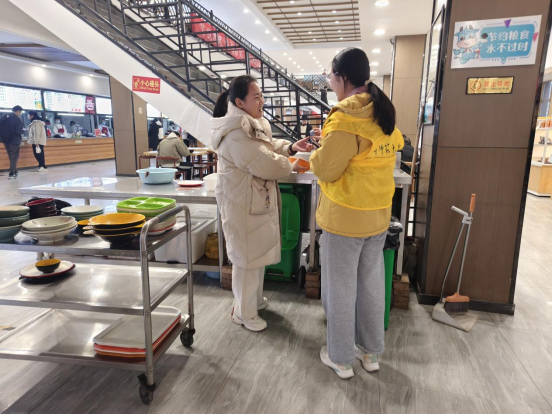 本次活动创新融合红色教育与劳动教育,通过“餐厅实践+知识问答”双轨模式,引导学生在参与光盘行动过程中深化粮食安全意识,切实推动校园文明建设。