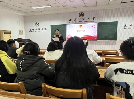 “种子宣讲团”宣讲评课活动在生物楼232教室顺利举行。学院团委书记刘文静老师及“种子宣讲团”成员参加活动。