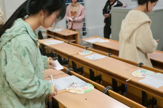 团扇绘景,以美育人。同学们通过描绘春柳、夏荷、秋风、冬雪等典型意象,不仅加深了对传统节气文化与自然哲理的认知,也在创作实践中提升了对中华传统美学的理解与认同。活动有效增强了学生的文化素养与人文自信,也为推动学院文化建设和营造浓厚美育氛围注入了新的活力。