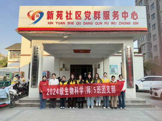 2024级生物科学(师范)五班团支部的志愿者们走进新苑社区,开展“反诈同心,健康同行”主题实践活动,为居民送上财产安全与身体健康的双重保障。