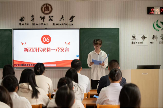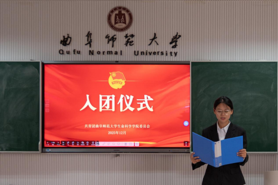 2025年下半年新团员入团仪式在生物楼232教室举行。学院党委副书记王建龙、团委副书记王鑫晗、施雨薇、2025年下半年新发展团员以及部分团员代表出席本次仪式。