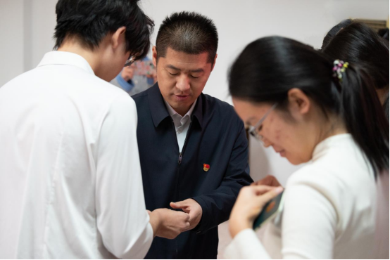 仪式在雄壮的国歌声中开始。会上,王建龙同志宣读了新发展团员名单,并为他们颁发团员证、佩戴团徽。