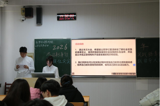 为深化2025级新生对社会实践的理解,激发学生参与实践活动的主动性,引导更多同学投身社会实践,12月20日,学院团委社会实践部于生物楼101教室举办“冬日躬身行,实践悟真情”社会实践指导大会。活动面向2024级、2025级全体同学。