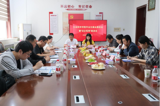 在生物楼208会议室召开毕业生就业推进会暨“访企拓岗”座谈会,学院党委书记李志广、院长王仁君、党委副书记王建龙出席会议,受邀的13家用人单位负责人、学院毕业班辅导员及毕业生代表参加了会议。