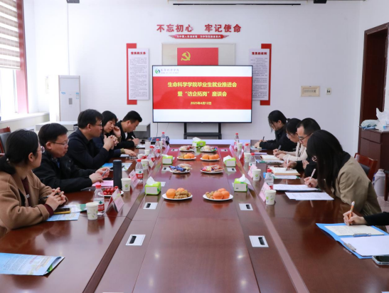 在生物楼208会议室召开2025年毕业生就业推进会暨“访企拓岗”座谈会。学院党委书记李志广、副院长燕艳、团委书记刘文静出席会议,受邀的5家用人单位负责人、学院毕业班辅导员及毕业生代表参加了会议。